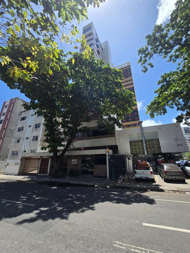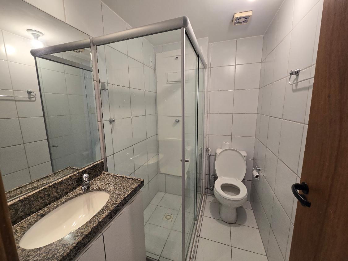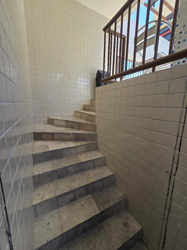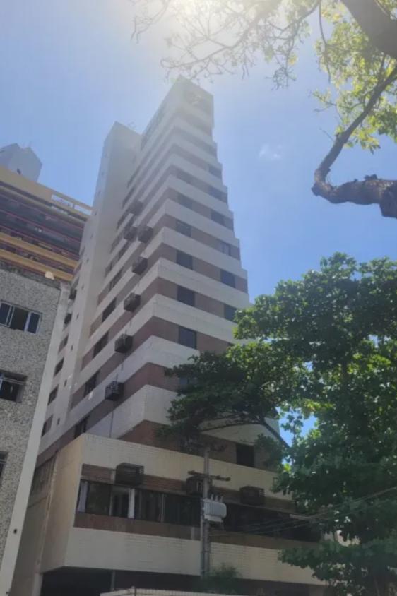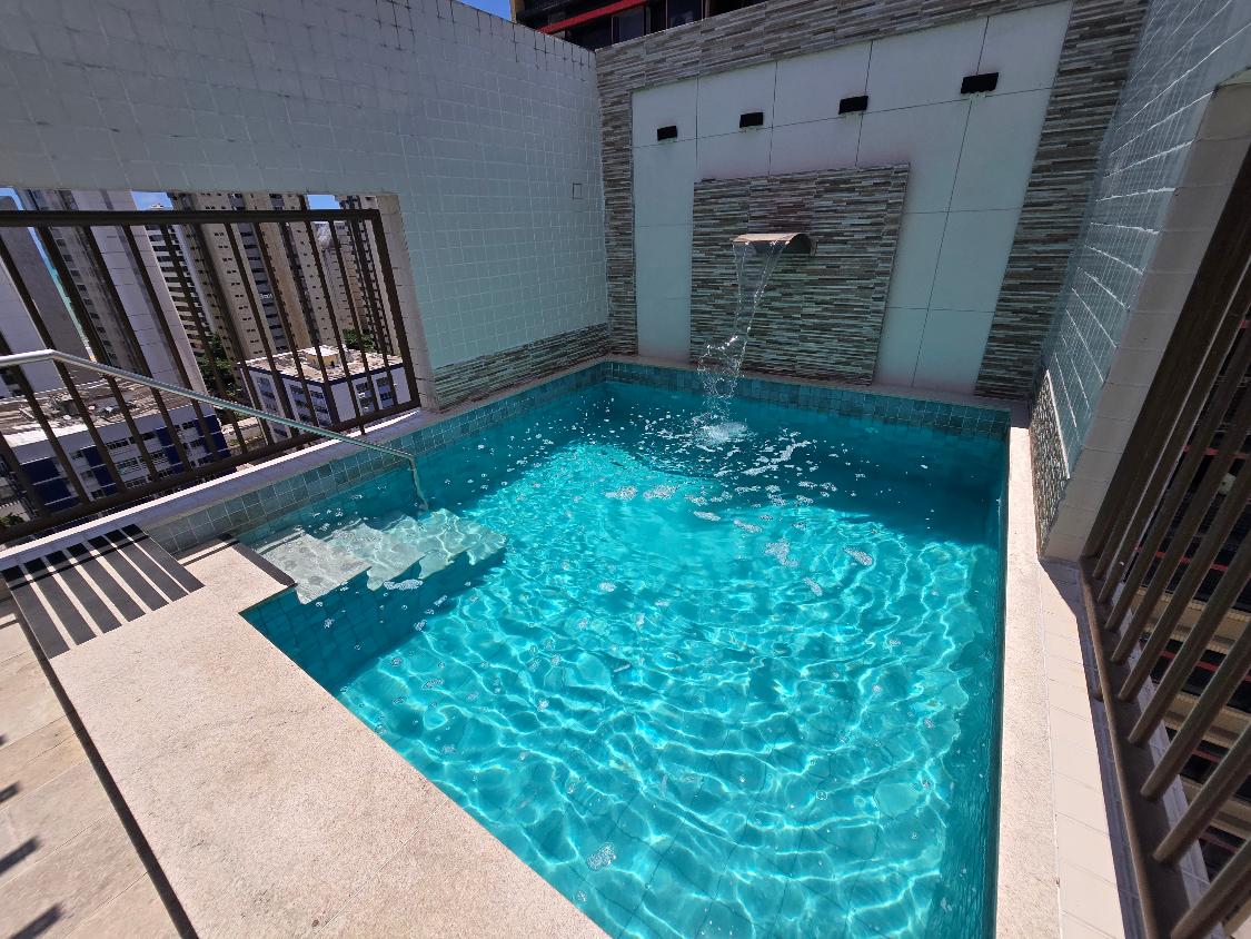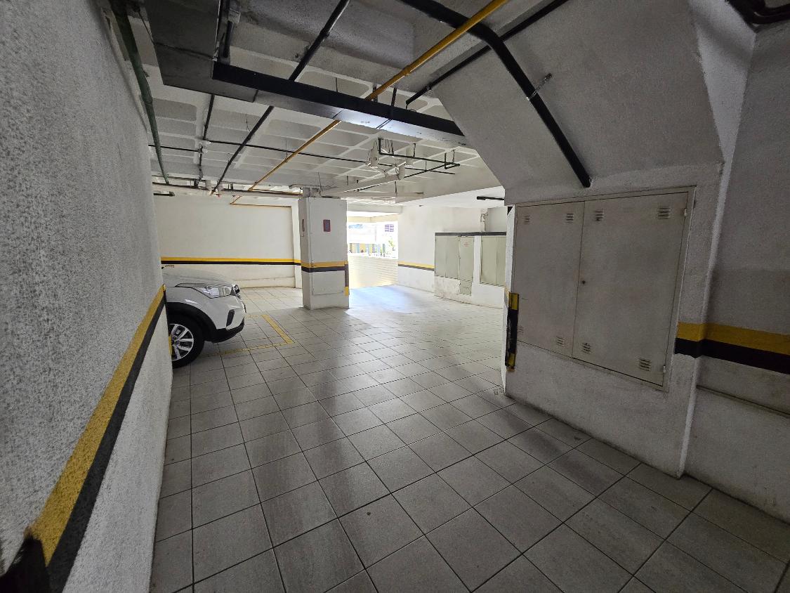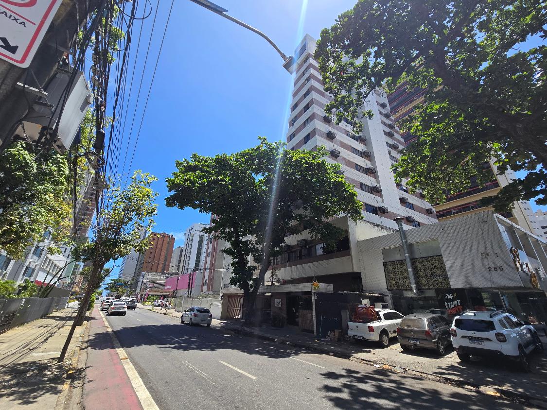 Flat 1 quarto com guarda roupas, wc social, sala ampla com janelão nascente, bastante ventilado, cozinha americana com armários, 1 vaga garam, área lazer na cobertura com salão de festas e piscina, bela vista para o mar.
