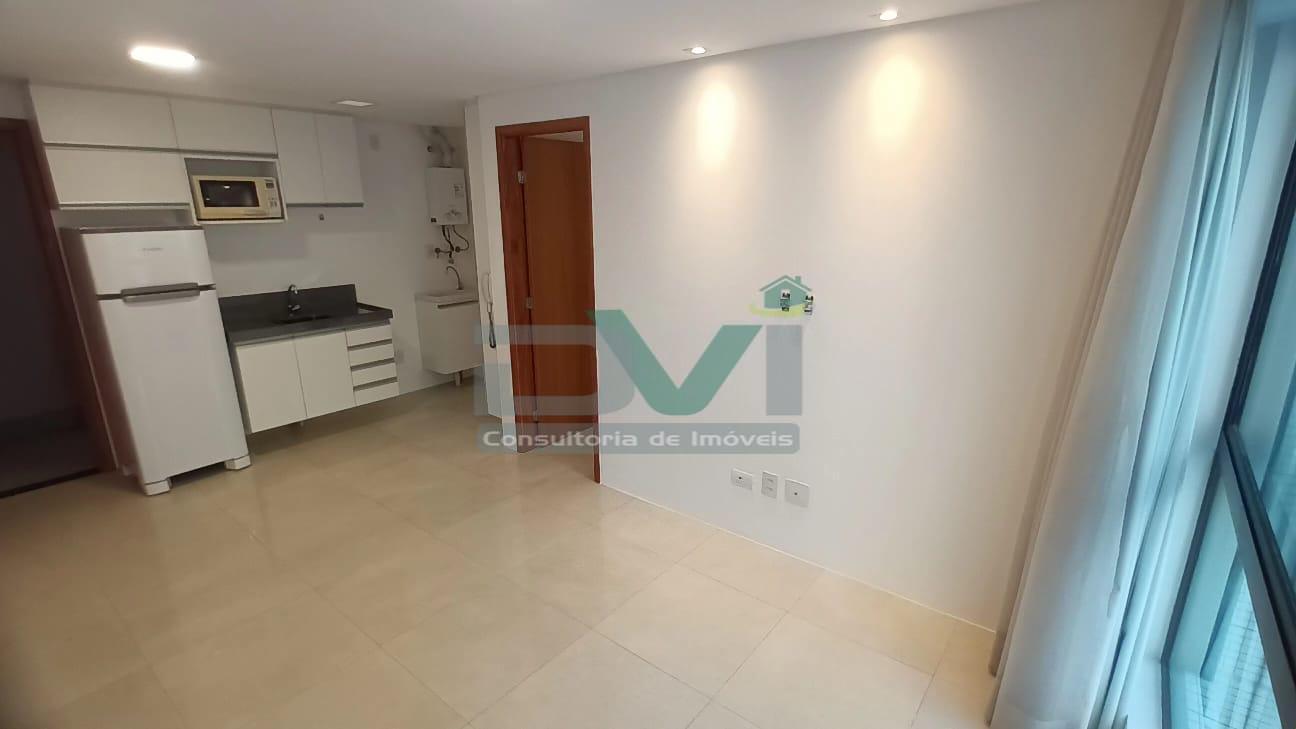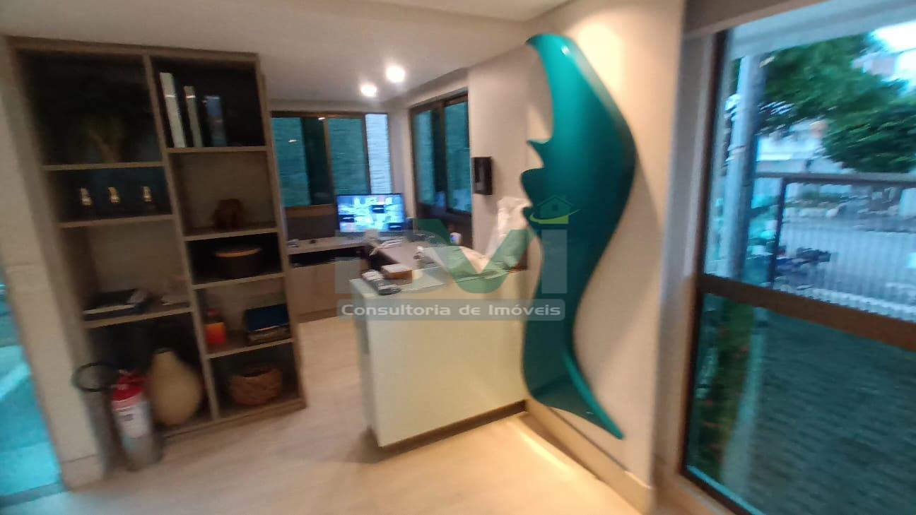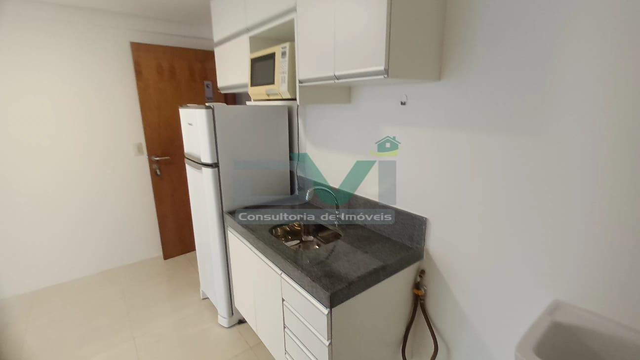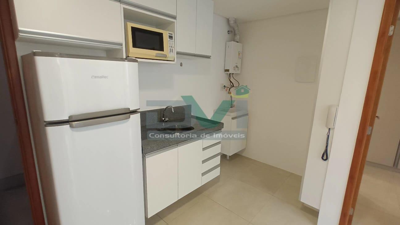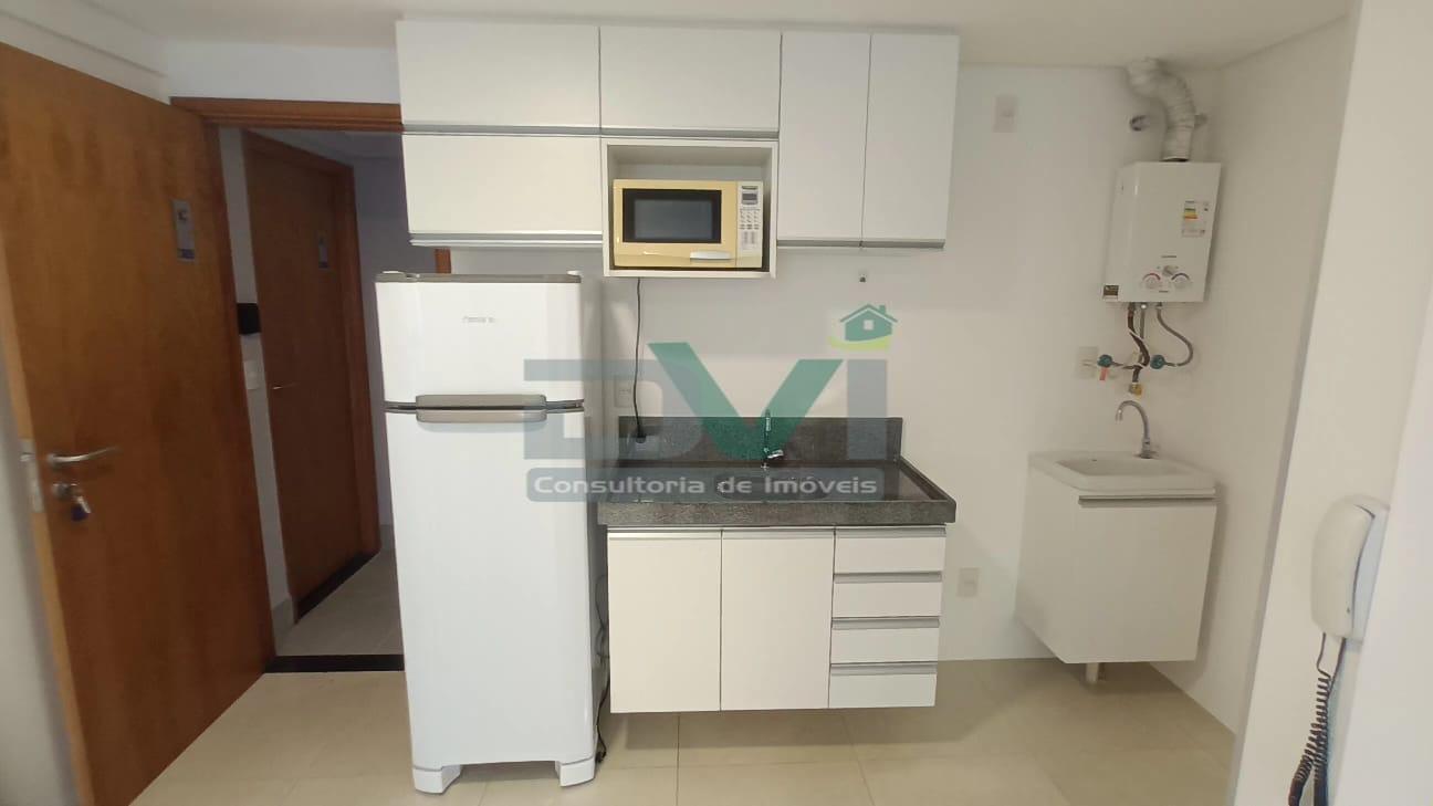 Flat todo no porcelanato, sala, janelão, cortina, cozinha com móveis planejados, boiler para o chuveiro de banho, quarto suíte com ar condicionado, cortina, guarda roupas novo, banheiro com box e móvel, 1 vaga garagem.